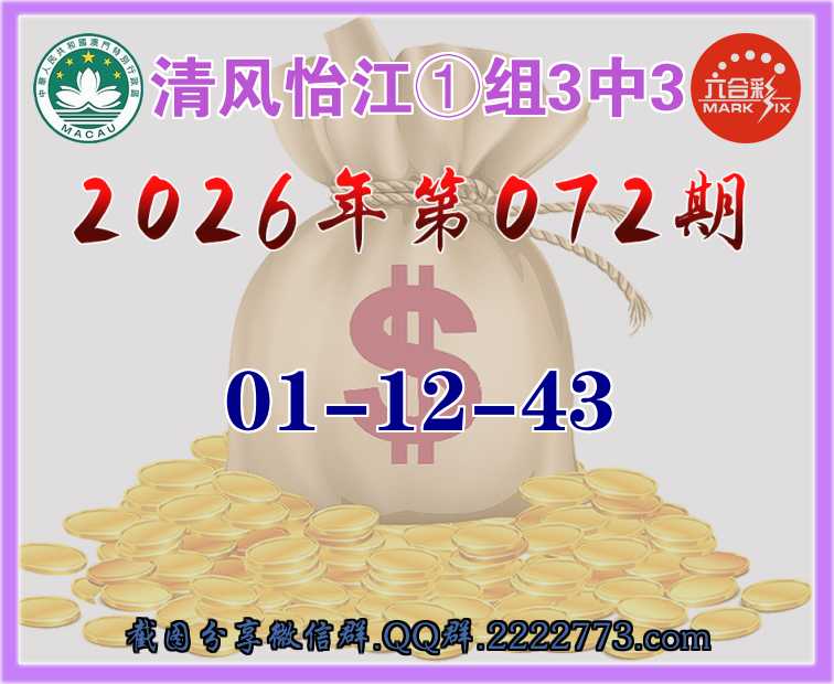 072期:【清风怡江】 🎆①组3中3🎆【01-12-43】