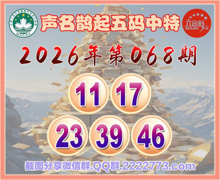 068期:【声名鹊起】 🀄五码中特🀄【11.17.23.39.46】开:23准上榜高手