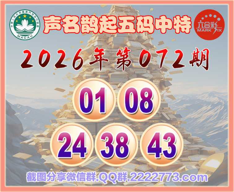 072期:【声名鹊起】 🀄五码中特🀄【01.08.24.38.43】开:46
