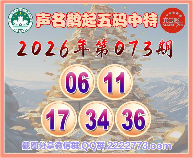 073期:【声名鹊起】 🀄五码中特🀄【06.11.17.34.36】开:34准上榜高手