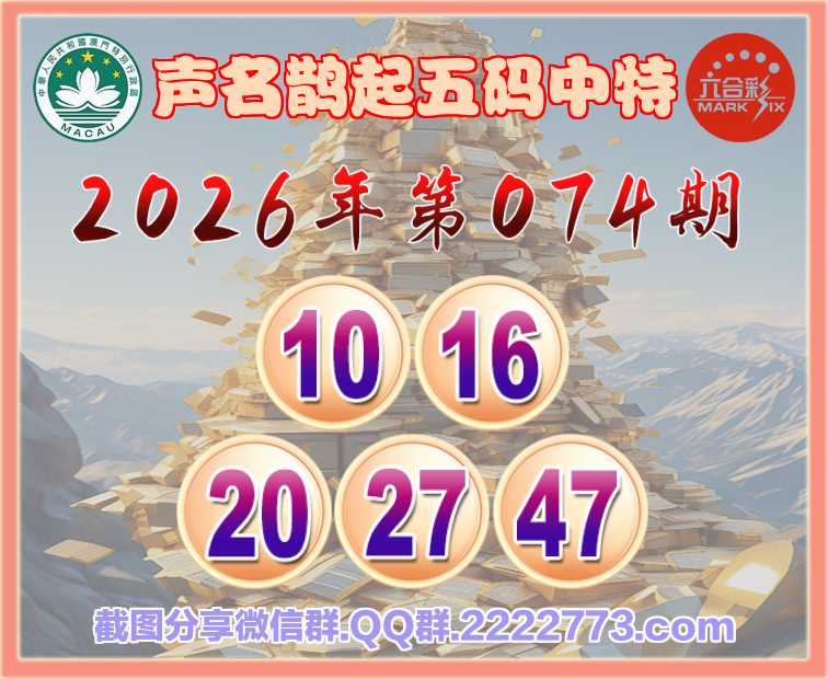 074期:【声名鹊起】 🀄五码中特🀄【10.16.20.27.47】开:10准上榜高手