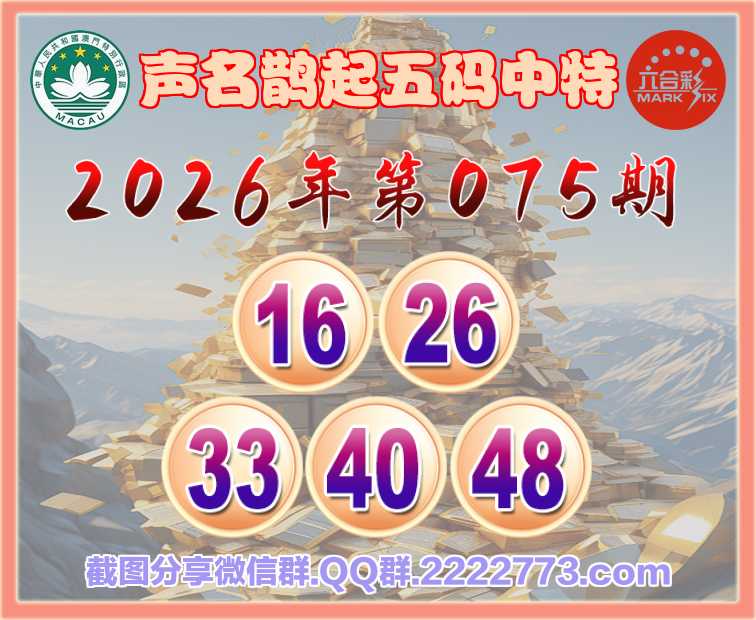 075期:【声名鹊起】 🀄五码中特🀄【16.26.33.40.48】开:33准上榜高手