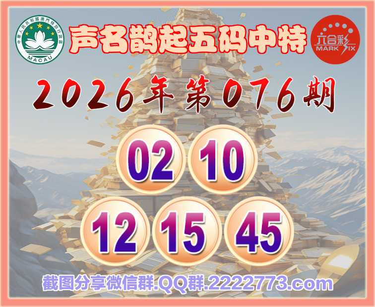 076期:【声名鹊起】 🀄五码中特🀄【02.10.12.15.45】开:02准上榜高手