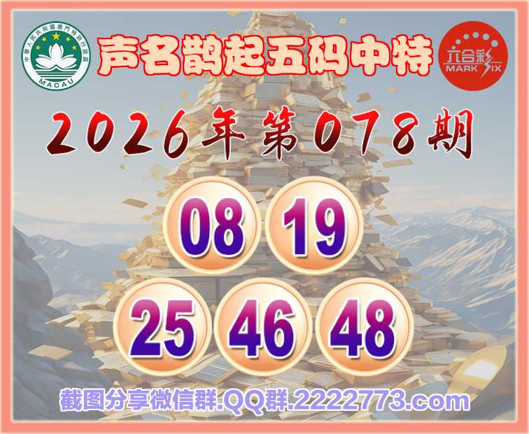 078期:【声名鹊起】 🀄五码中特🀄【08.19.25.46.48】开:46准上榜高手