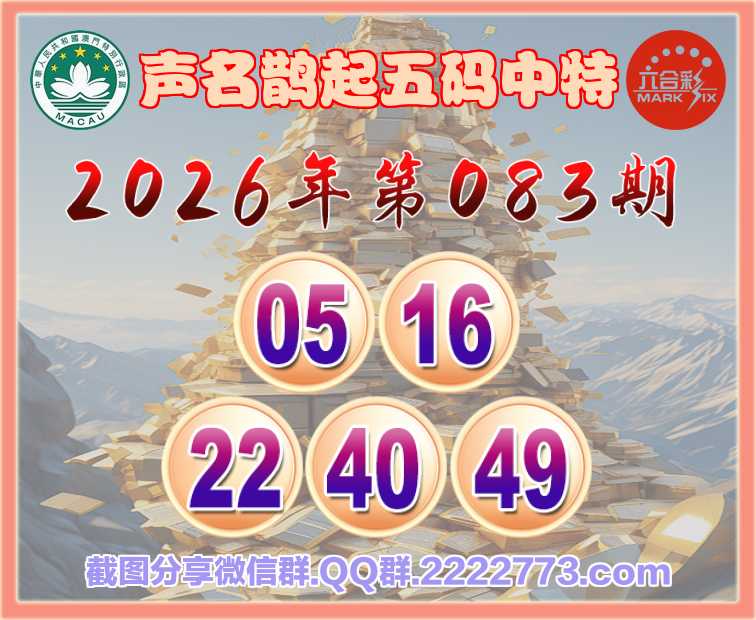083期:【声名鹊起】 🀄五码中特🀄【05.16.22.40.49】开:05准上榜高手
